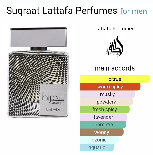 عطر Suqraat یا Socrates یکی از عطرهای مردانهی برند لاتافا است که در سال ۲۰۲۲ عرضه شده. این عطر با ترکیبی از نتهای تازه، تند و چوبی طراحی شده تا ترکیبِ شیک، انرژیبخش و مردانهای ارائه کند. Suqraat رایحهای دارد که برای استفادهی روزانه یا نیمهرسمي مناسب است و برای کسانی مناسب است که دوست دارند عطری داشته باشند که هم رایحهاش احساس تمیزی و تازگی بدهد، هم کمی گرما و عمق.