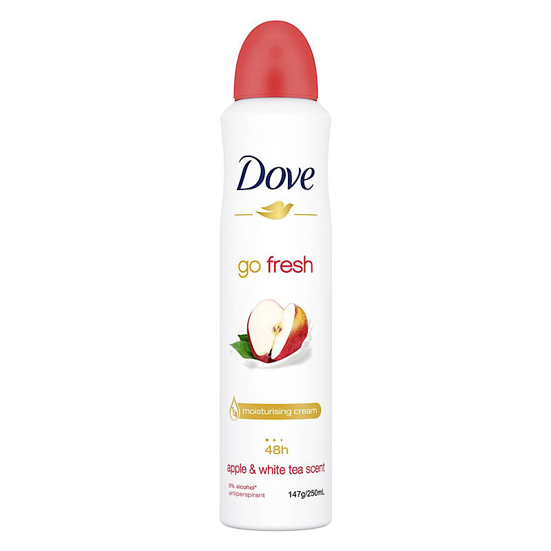 تمام اسپریهای ضد تعریق داو از جمله رایحه سیب، دارای یک چهارم کرم مرطوبکننده هستند که به محافظت از پوست زیر بغل کمک کرده و آن را نرم و لطیف نگه میدارد. این ویژگی داو را از سایر برندها متمایز میسازد.