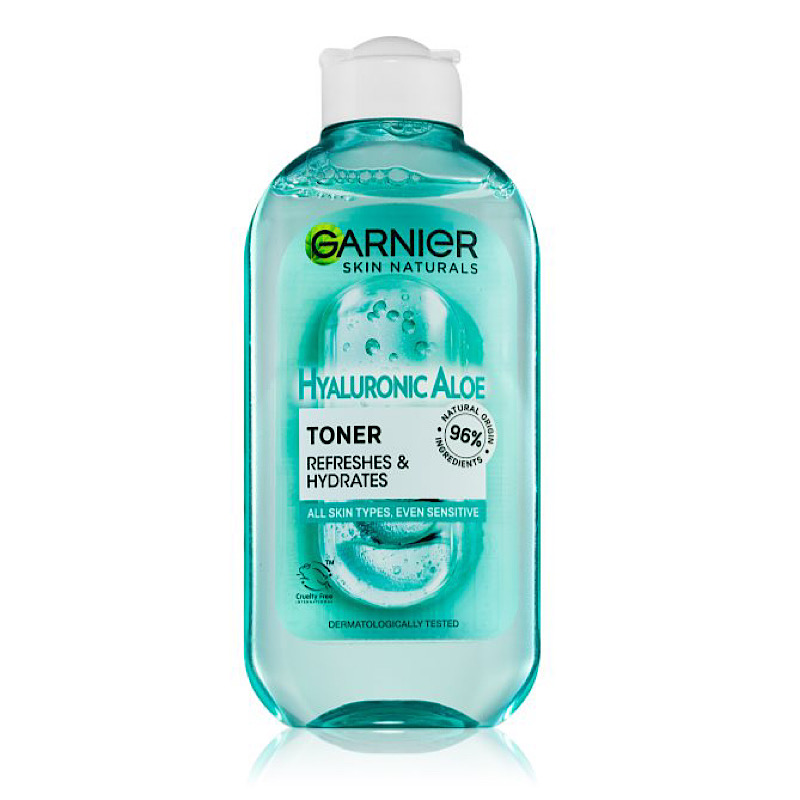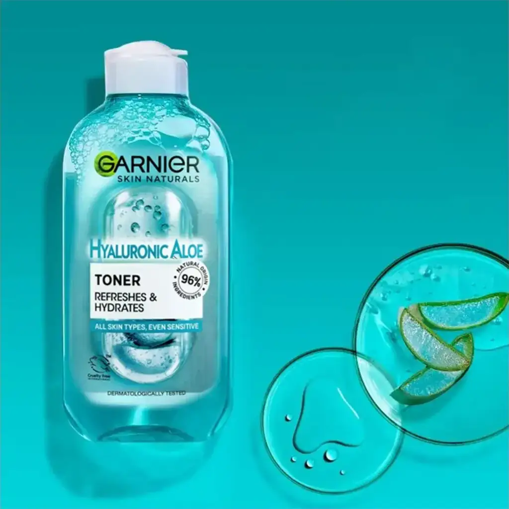 تونر Garnier Hyaluronic Aloe Toner با فرمولاسیون حاوی هیالورونیک اسید و عصاره آلوئهورا، محصولی جذبرسان و طراوتبخش است که پس از شستوشو بهسرعت پوست را مرطوب و شاداب میکند. این تونر با ۹۶٪ ترکیبات گیاهی، فاقد پارابن و رنگ مصنوعی بوده و برای استفاده روزانه و انواع پوست مناسب طراحی شده است.
