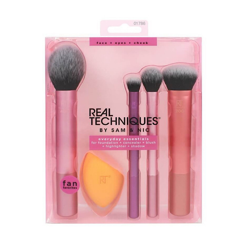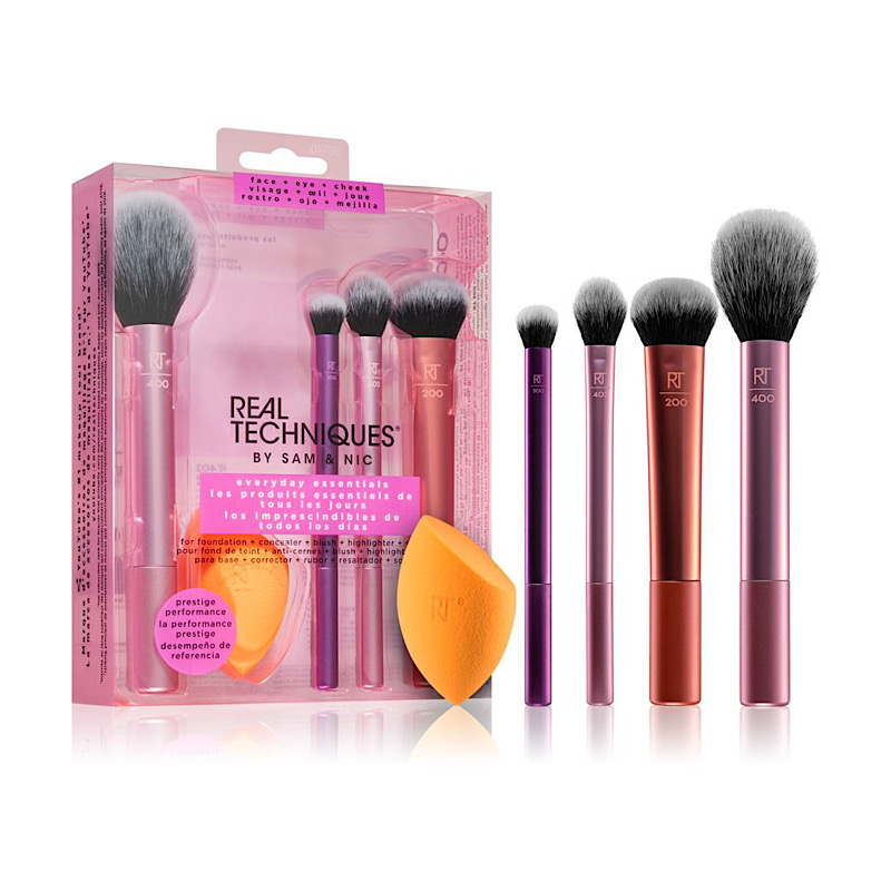 این ست Real Techniques شامل ۴ براش ساخته شده از الیاف مصنوعی و 1 اسفنج بلندر است. شما میتوانید از ست براش و اسفنج اوری دی اسنشیال برند ریل تکنیک | Real Techniques Everyday Essentials برای یک آرایش روزانه استفاده کنید و یک میکاپ کامل داشته باشید. براشها و اسفنج این ست به راحتی قابل شستشو هستند و در تولید این محصولات از تست حیوانی استفاده نشده است.