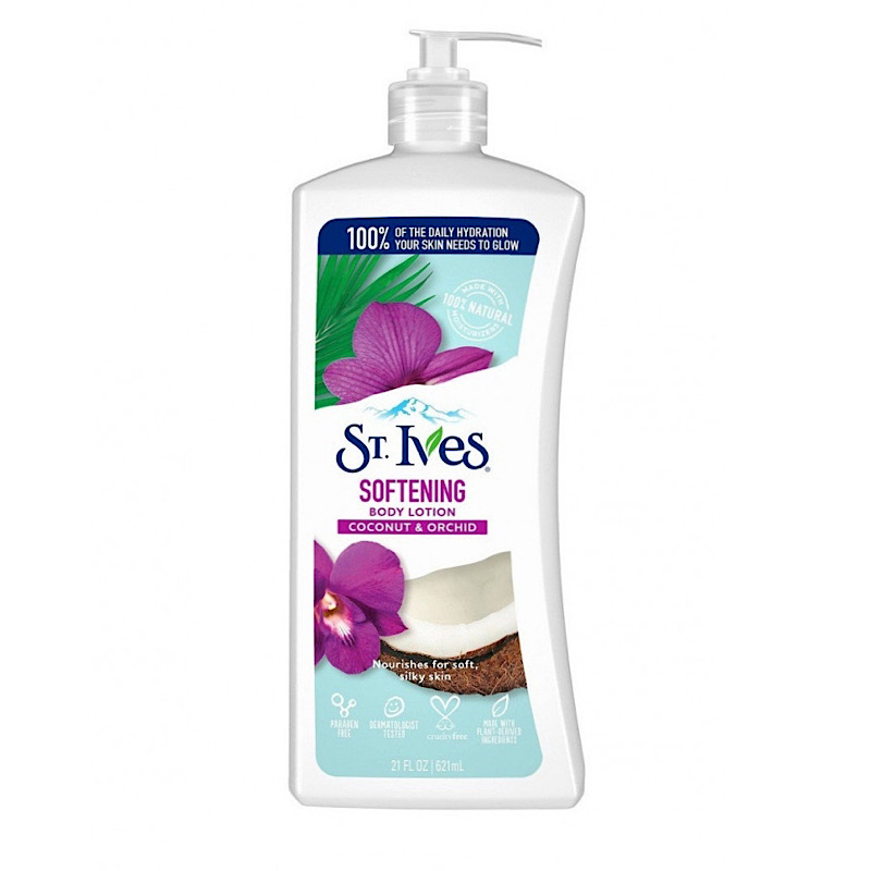 لوسیون بدن Softening از برند محبوب St. Ives با رایحه دلنشین نارگیل تازه و عصاره گل ارکیده، برای کسانی طراحی شده که به دنبال پوستی نرم، خوشبو و لطیف هستند.