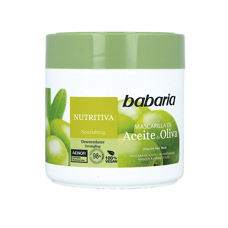 ماسک مو اسپانیایی Babaria Mascarilla de Aceite de Oliva نرم کننده و ترمیم کننده موهای خشک و ضعیف شده و دچار گره خوردگی است.