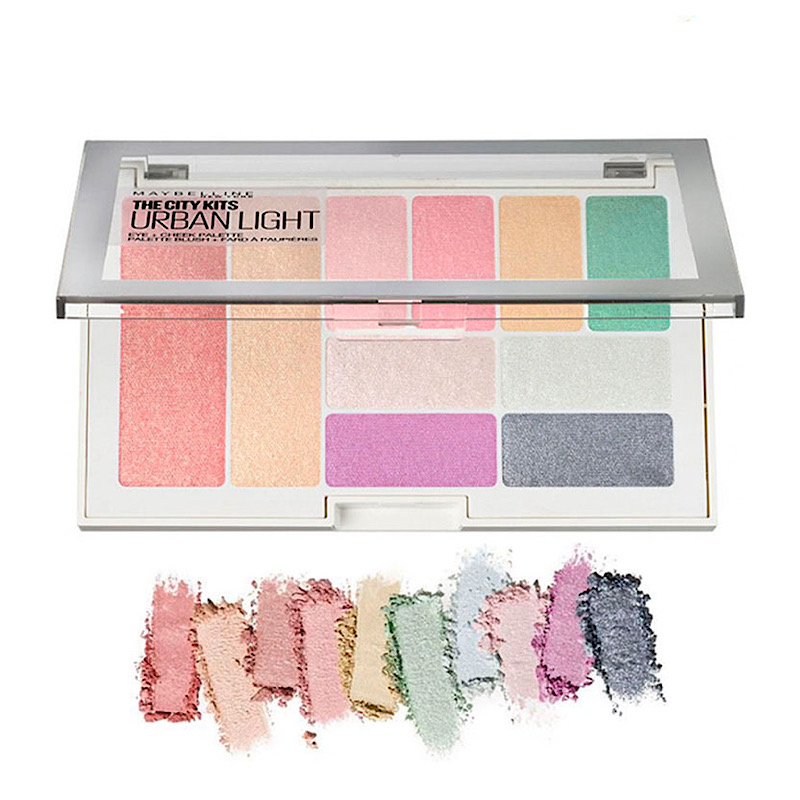 این پالت یکی از اعضای مجموعهی The City Kits از میبلین است با عنوان Eye & Cheek Palette Urban Light که شامل سایههای چشم و بخشهایی برای گونه نیز هست.