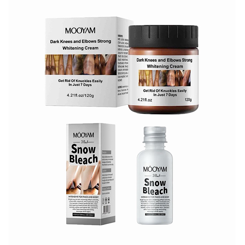 پکیج سفید کننده فول بادی مویام شامل یک کرم برای رفع تیرگی نواحی حساس مثل بیکینی و صورت و …