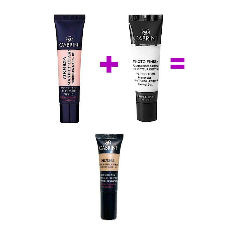 پکیج کرمپودر و پرایمر گابرینی یک پکیج اقتصادی و به صرفه برای داشتن دو محصول با کیفیت با قیمت مناسب و یک عدد کرمپودر سایز کوچک به عنوان اشانتیون روی پکیج.