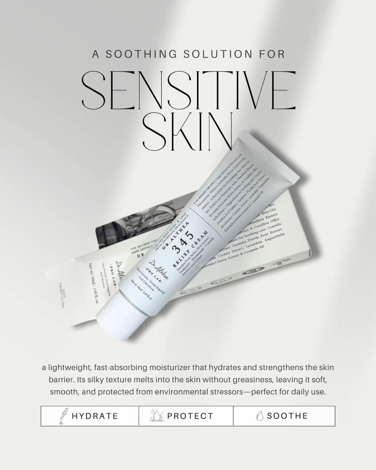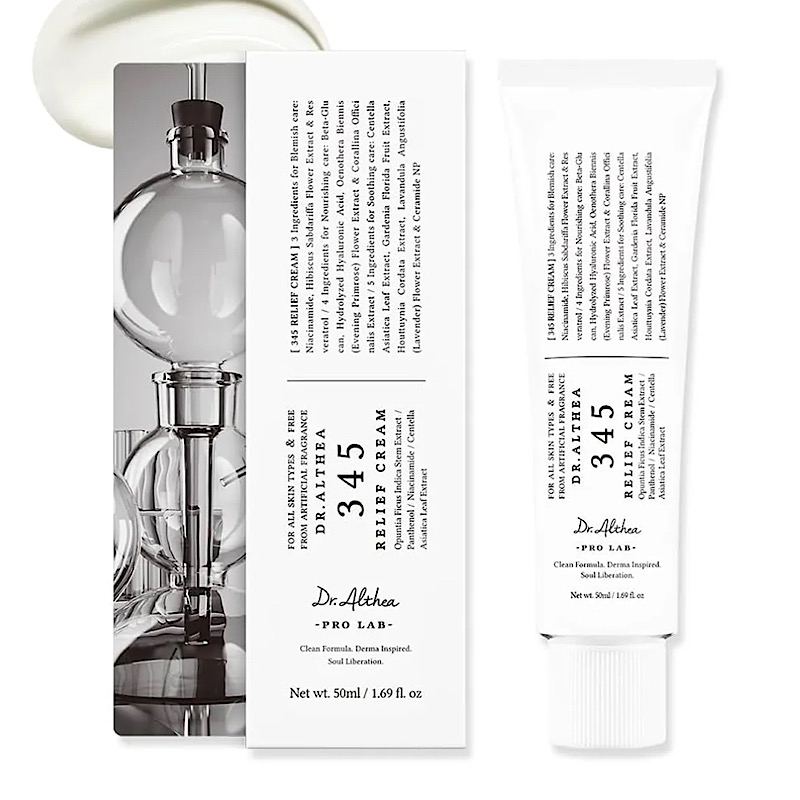 کرم 345 Relief Cream از برند کرهای Dr. Althea (دکتر آلتیا) یک کرم ژل سبک و چندلایه برای تسکین، ترمیم و تقویت پوست آسیبدیده است. این محصول، پس از درمانهای تهاجمی یا التهاب، کمک میکند تا سد محافظتی پوست بازسازی شده، قرمزی کاهش یافته و حفظ رطوبت، آسانتر شود.